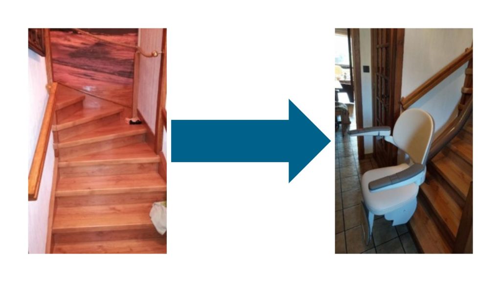 PROJET DE TRAVAUX : Projet d’adaptation d’un logement d’un propriétaire occupant aux revenus très modestes. Il s’agit d’un couple de propriétaire, dont l’un a chuté dans les escaliers, ce qui a entraîné une hospitalisation. La famille a donc demandé l’installation d’un monte escaliers.