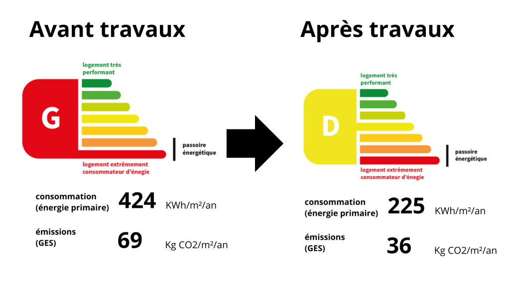 PROJET DE TRAVAUX : Rénovation énergétique d’un logement d’un propriétaire occupant aux revenus très modestes. Les travaux se sont beaucoup concentré sur l’isolation : des murs par l’intérieur, du mur pignon par l’extérieur, du plancher des combles perdus, de la toiture. Il y a également eu des fenêtres et la porte d’entrée de remplacés et l’installation d’une VMC.